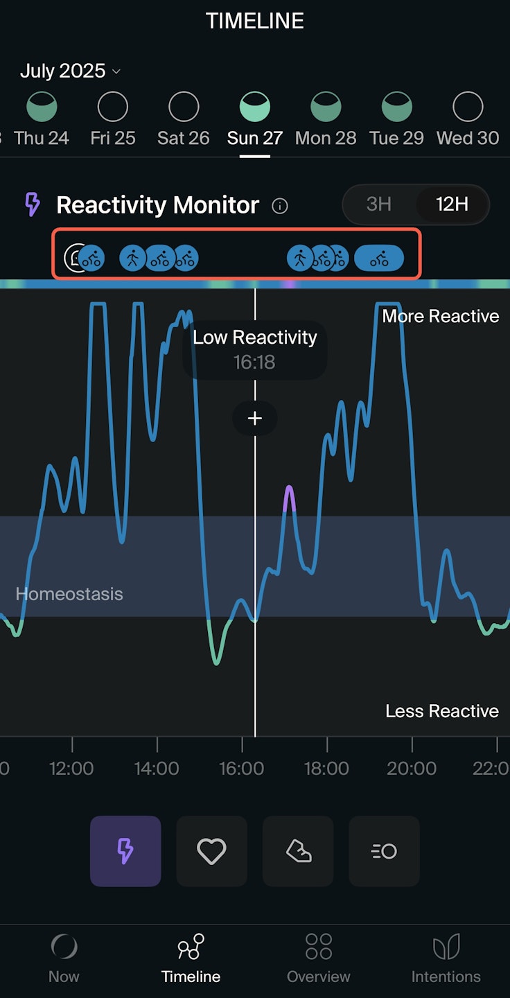 At the top of any graph, you'll see various icons showing human figures walking, cycling, dancing, and more. These icons represent your logged activities.