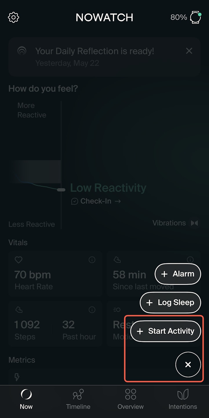 The Activity feature is a habit tracker that allows you to monitor any physical or non-physical activity. By recording activities, you contextualize your data in the Timeline and gain insights into how these habits impact your well-being.