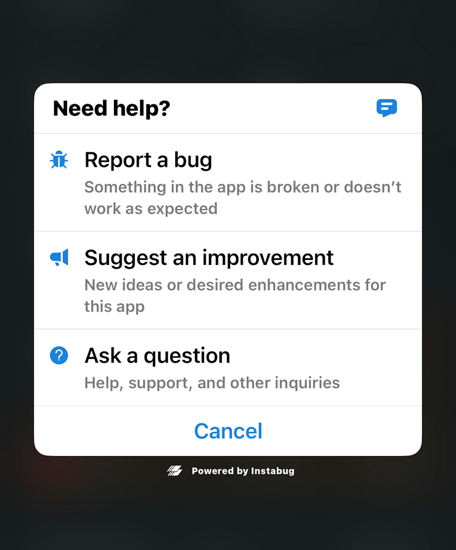 If you notice a bug or unexpected behavior, simply shake your phone while the NOWATCH app is open to report the issue.