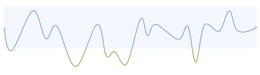 The Stress Gauge chart shows a line which reflects your reactivity. It also uses colours to indicate different types of mental states: