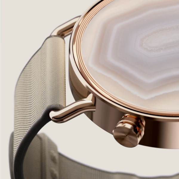 Design: NOWATCH features a screenless design with a stainless steel, waterproof case and customizable straps.